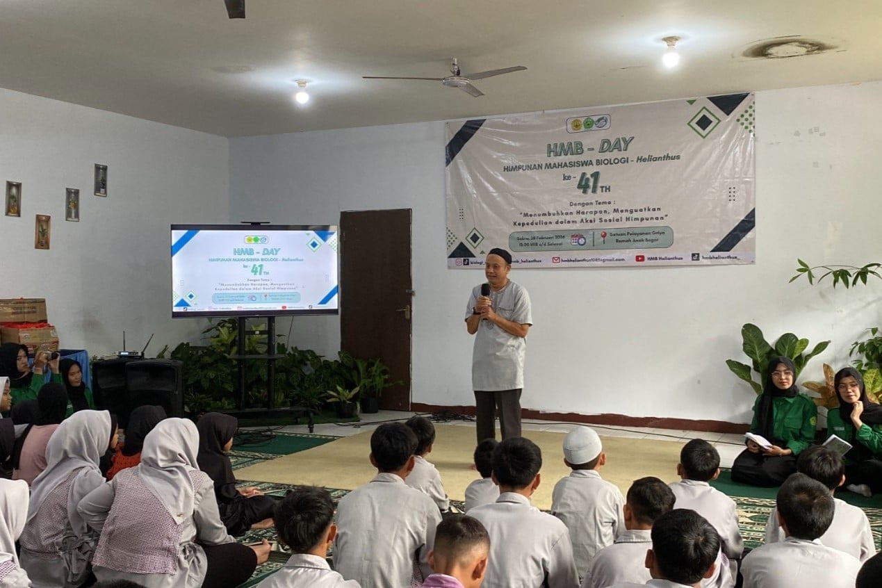 Biologi - Program Studi Biologi Fakultas Matematika dan Ilmu Pengetahuan Alam (FMIPA) Universitas Pakuan bersama Himpunan Mahasiswa Biologi (HMB) Helianthus menyelenggarakan kegiatan sosial bertajuk “Prodi Biologi Peduli” sebagai bentuk kepedulian mahasiswa terhadap masyarakat. Kegiatan ini dilaksanakan pada Sabtu, 28 Februari 2026 di Satuan Pelayanan Griya Ramah Anak Bogor dan diikuti oleh mahasiswa, dosen, serta anak-anak yang berada di bawah pembinaan lembaga tersebut.